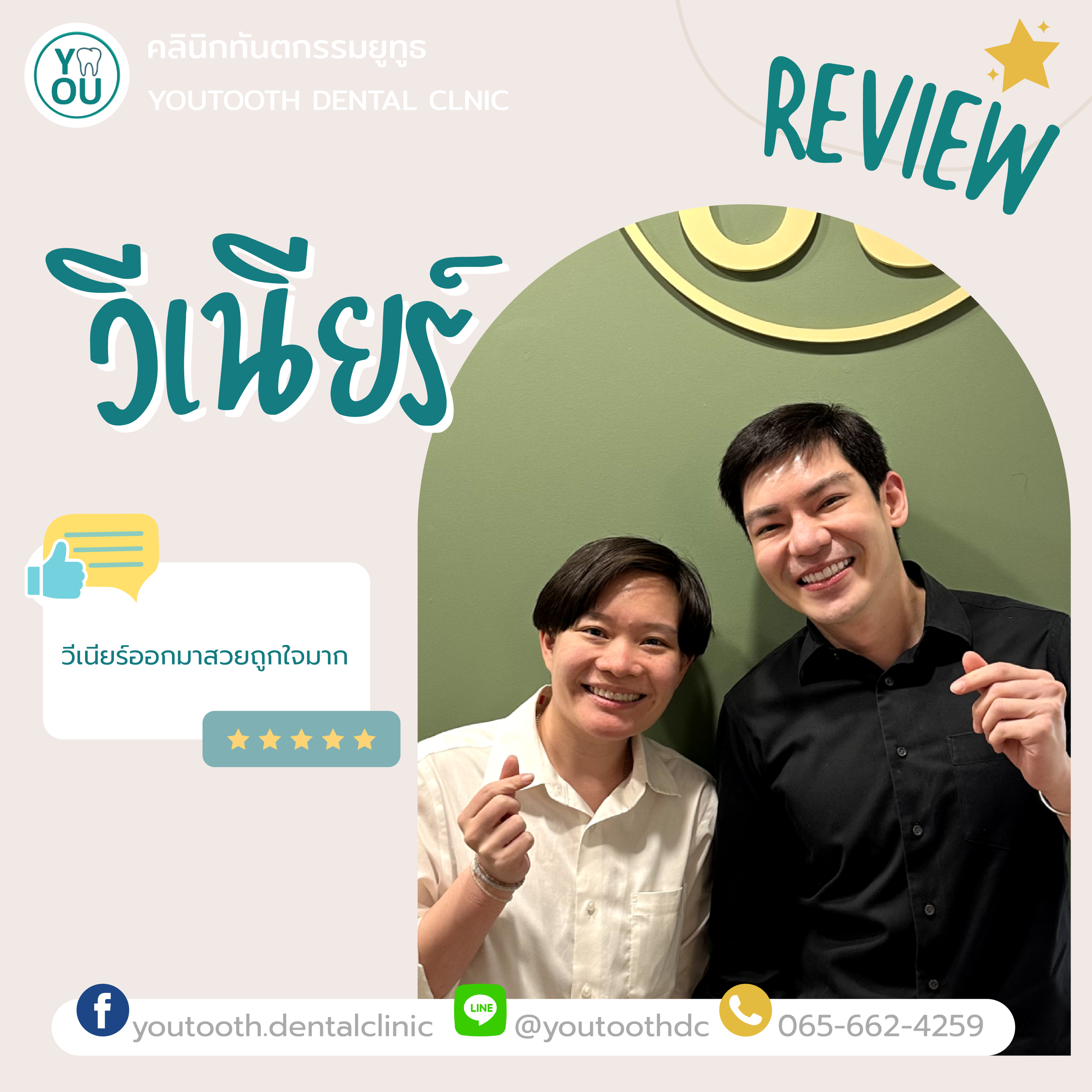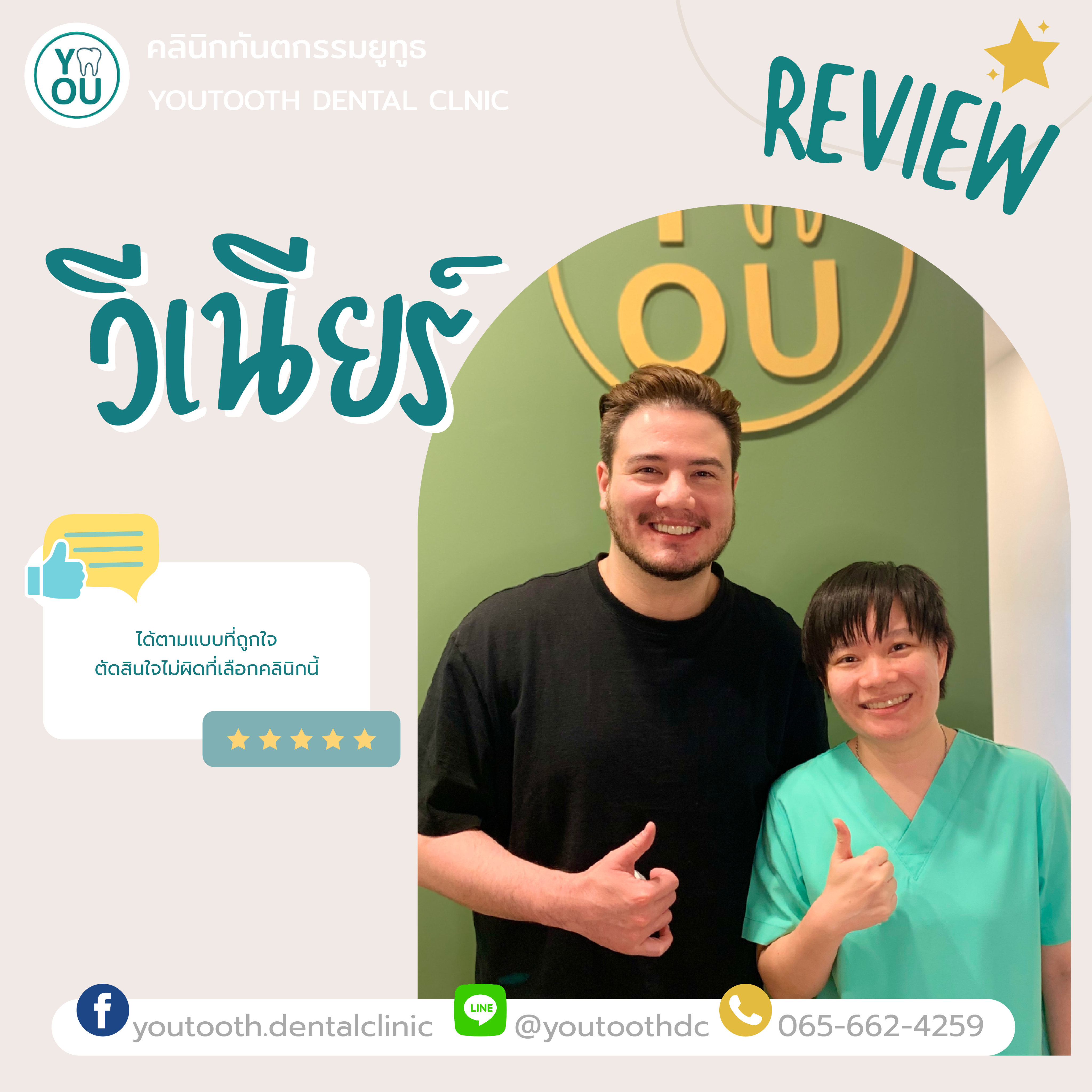 คนไข้มั่นใจได้ว่า คลินิกทันตกรรมยูทูธทำการรักษาวีเนียร์โดยคุณหมอเฉพาะทางด้านความสวยงาม ที่ดูแลและใส่ใจในทุกๆเคส สามารถตอบสนองความต้องการในการเปลี่ยนแปลงรอยยิ้ม ของคนไข้อย่างแน่นอน